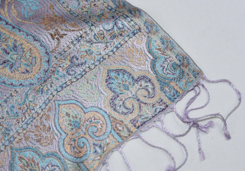 Hedvábná šála Jamawar střední - šeříková a tyrkysová s ornamentySkladem 1 ks1 550 Kč/ ks
