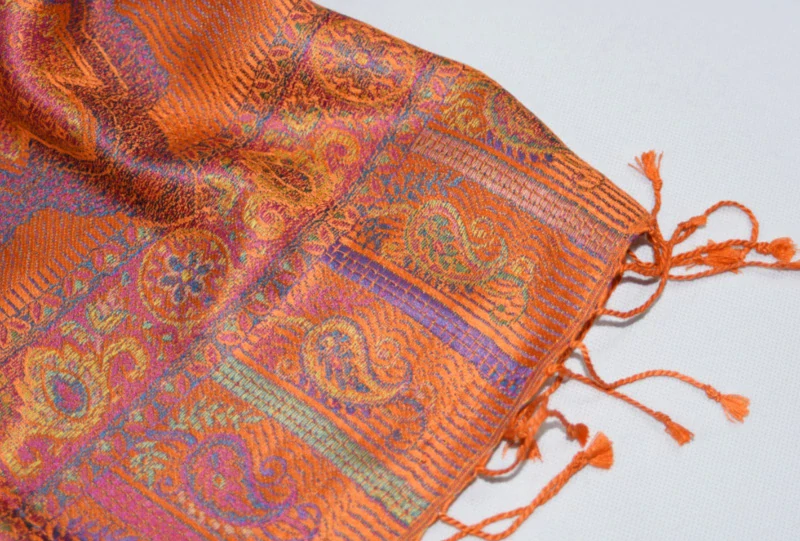 - Hedvábná šála Jamawar velká - oranžová s ornamenty 4