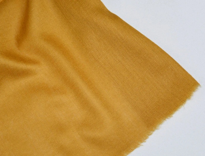 Jednobarevná vlněná šála ze superjemné podsadové jehněčí vlny v hořčicové barvě. Šála je z jednovrstvé látky a tkaná přímo v indickém Kašmíru. Díky své velikosti má šála řadu možností využití. V zimě se do ní lze příjemně zachumlat, v teplejších měsících může sloužit jako elegantní doplněk.