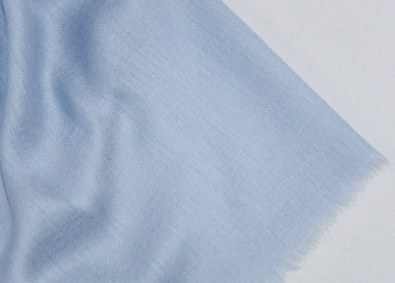 Jednobarevná vlněná šála ze superjemné podsadové jehněčí vlny ve světlé nebesky modré barvě. Šála je z jednovrstvé látky a tkaná přímo v indickém Kašmíru. Díky své velikosti má šála řadu možností využití. V zimě se do ní lze příjemně zachumlat, v teplejších měsících může sloužit jako elegantní doplněk.